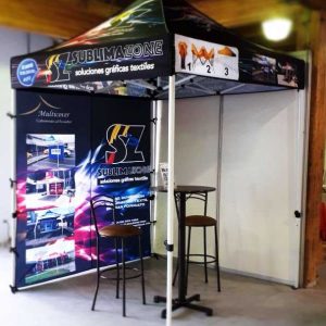 - Toldos, carpas, mangas, banderas, stands, roll ups, bakings, gotas, promocionales, etc.